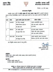 लोकसभा चुनावों के मद्देनजर बीजेपी ने राष्ट्रीय कार्य समिति के सदस्य डॉ विनय सहस्त्रबुद्धे को प्रदेश का चुनाव प्रभारी नियुक्त किया है। इनके साथ विजया राहटकर और पूर्व सांसद प्रवेश वर्मा को राजस्थान में सह-प्रभारी नियुक्त किया है। इसके साथ ही राजस्थान बीजेपी के वरिष्ठ नेता और पूर्व प्रदेशाध्यक्ष सतीश पूनिया को पार्टी ने हरियाणा में प्रदेश चुनाव प्रभारी की जिम्मेदारी सौंपी है।