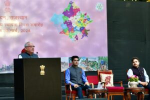 आरंभ में राज्यपाल कलराज मिश्र ने राजस्थान निर्माण के विभिन्न चरणों, रियासतों के एकीकरण से बने आधुनिक राजस्थान और यहां के लोगों की जीवटता की चर्चा करते हुए राजस्थान में सात वार और नौ त्योहार की संस्कृति की भी विशेष रूप से चर्चा की।उन्होंने कहा कि उत्सवधर्मिता में यहां के लोगों ने विषम भौगोलिक परिस्थितियों में भी जीते हुए अभावों में भी पर्व,तीज—त्योंहार और संस्कृति के भाव भरे है।उन्होंने राजस्थान की पर्यटन विरासत को महत्वपूर्ण बताते हुए ‘पधारो म्हारे देश’ की मनुहार के जरिए यहां के चित्ताकर्षक पर्यटन स्थलों पर पर्यटक आमंत्रण के अधिकाधिक प्रयास करने पर भी जोर दिया।