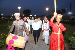 नोहर से रूखसाना खान ने “सत्यम शिवम सुंदरम” और “ऐ मेरे वतन के लोगों” गीत सुनाकर माहौल को देशभक्ति रंग में रंगा।सिर पर चरी में प्रज्वलित अग्नि के साथ किशनगढ़ से राधा देवी ग्रुप द्वारा चरी नृत्य “ओ म्हानै ला दीजो सा बाजूदार बंगड़ी” और “ओ म्हारी” घूमर निखराली” नृत्य प्रस्तुति देकर समा बांधा।साथ ही, भपंग और बीन वाद्य यंत्र के जरिए कलाकारों ने गोगा जी की स्तुति की।