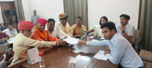 कलेक्ट्रेट पंहुचने पर कन्याओं द्वारा सी पी जोशी के तिलक लगाकर आरती उतारी गई और राम दरबार के पात्रों के रूप में सजे बालक बालिकाओं ने उनका स्वागत किया।