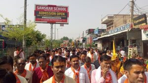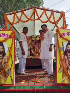 बस्सी(योगेश कुमार गुप्ता) बस्सी कस्बे में कल्याण गंज में कल्याण महाराज के मंदिर में भगवान परशुराम के जन्मोत्सव के उपलक्ष में पंडितों के द्वारा विधि विधान से पूजा अर्चना करके आरती करके ध्वज का पूजन करके शोभायात्रा को बैंड बाजे के साथ रवाना किया।