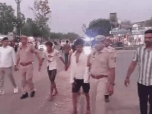 Home » राजस्थान » जयपुर में महिला को ब्लैमकमेल करने वालों का जुलूस निकाला:फटे कपड़ों में लड़खड़ाते हुए एक किलोमीटर तक पैदल थाने ले गई पुलिस