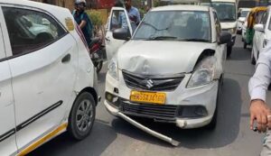 हादसे में कई कारें क्षतिग्रस्त हुई. हादसे की जानकारी मिलने पर पुलिस मौके पर पहुंची. आपको बता दें कि करीब दोपहर 2 बजे बाइस गोदाम से सहकार मार्ग होते हुए कार टोंक रोड की तरफ जा रही थी कि अचानक एक कार चालक ने सहकार मार्ग पर ब्रेक लगा दिया.