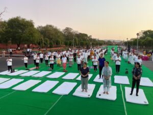 जयपुर(सुनील शर्मा)* नगर निगम ग्रेटर द्वारा 10 जून से आयोजित किये जा रहे जयपुर योग महोत्सव-2024 के दसवें दिन जयपुरवासियों ने योगाभ्यास किया बुधवार को जिसके अन्तर्गत अल्बर्ट हॉल रामनिवास गार्डन में योग शिविर आयोजित किये।जयपुरवासियों में योग महोत्सव को लेकर खासा उत्साह देखा जा रहा है।योग महोत्सव की खास बात यह है कि हर योग शिविर की शुरूआत में गायत्री सूक्ष्म नैनो यज्ञ द्वारा की जाती है।जिसमें सभी साधकों द्वारा आहूति दी जाती है।योग शिविर में आयुक्त रूकमणि रियाड़,अतिरिक्त आयुक्त सीमा सहित जोन एवं मुख्यालय उपायुक्त ने योग किया।