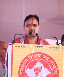 कार्यक्रम को मुख्यवक्ता के रूप में संबोधित करते हुए राष्ट्रीय स्वयं सेवक संघ के क्षेत्र प्रचारक निंबाराम ने कहा कि शिक्षक राष्ट्र को मजबूत करने का काम करते हैं।उन्होंने कहा कि आधुनिक शिक्षा पद्धति में राष्ट्रीयता का समावेश आवश्यक है,जिससे विद्यार्थियों में राष्ट्रप्रेम की भावना विकसित हो।