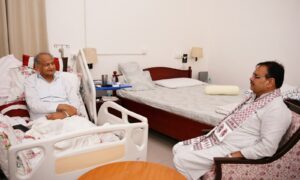 जयपुर(सुनील शर्मा) मुख्यमंत्री भजनलाल शर्मा ने सोमवार को पूर्व मुख्यमंत्री अशोक गहलोत के सिविल लाइंस स्थित राजकीय आवास पर जाकर उनकी कुशलक्षेम पूछी।मुख्यमंत्री भजनलाल शर्मा ने पूर्व मुख्यमंत्री अशोक गहलोत से उनके स्वास्थ्य की जानकारी ली और ईश्वर से उनके शीघ्र स्वस्थ होने की कामना की।