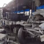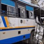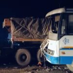 आगे चल रही सीमेंट से भरे ट्रक से टकराई बस