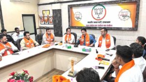 जयपुर(सुनील शर्मा) भाजपा प्रदेश कार्यालय में राष्ट्रीय महामंत्री राजू बिस्ता,भाजयुमो प्रदेश अध्यक्ष अंकित चेची,भाजयुमो राष्ट्रीय उपाध्यक्ष एवं प्रभारी नेहा जोशी और अन्य की उपस्थिति में राजस्थान भाजयुमो राज्य नेताओं के साथ भाजयुमो राष्ट्रीय टीम के सदस्यों की बैठक की।
