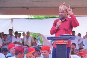 सांसद हनुमान बेनीवाल ने कहा की प्रधानमंत्री की रैली आज जयपुर में है उससे ज्यादा संख्या आज खरनाल में है।
