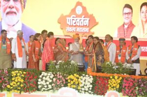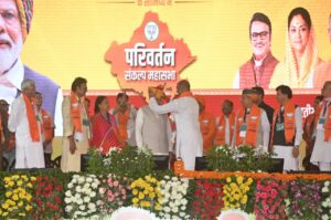 जयपुर (सुनील शर्मा) भाजपा प्रदेश अध्यक्ष सीपी जोशी ने आज जयपुर जिले के दादिया में प्रधानमंत्री नरेंद्र मोदी का साफा पहनाकर स्वागत किया,इससे पहले प्रधानमंत्री के साथ रथ में सवार होकर उपस्थित जनता का अभिवादन किया।परिवर्तन संकल्प महासभा के स्वागत भाषण को संबोधित करते हुए भाजपा प्रदेश अध्यक्ष सीपी जोशी ने कहा कि ऐतिहासिक निर्णय सदैव ऐतिहासिक व्यक्ति ही ले सकता है,ऐसे ऐतिहासिक व्यक्ति प्रधानमंत्री नरेंद्र मोदी का वीरों की धरती राजस्थान में स्वागत है। प्रधानमंत्री नरेंद्र मोदी ने नई संसद का शिलान्यास किया और लोकार्पण भी किया।गणेशचतुर्थी के शुभ अवसर पर नव संसद में प्रवेश के साथ पहला बिल नारी शक्ति वंदन अधिनियम लाकर उसे दोनों सदनों में पारित करवा ऐतिहासिक कार्य किया है।इस कार्य के लिए देश की आधी आबादी यानी मातृशक्ति प्रधानमंत्री का अभिनंदन करती है।केंद्र सरकार ने उज्जवला योजना में गैस कनेक्शन देकर,जन धन में खाते खुलवा कर,सीआईएसएफ में महिलाओं की भागेदारी करवा कर