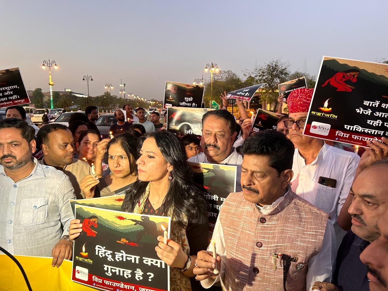 पहलगाम में हुए शहीदों को श्रद्धांजलि देने के लिए निकाले गए इस कैंडल मार्च में विप्र फाउंडेशन जयपुर जोन अध्यक्ष राजेश कर्नल, राष्ट्रीय उपाध्यक्ष परमेश्वर शर्मा, राष्ट्रीय महामंत्री पवन पारीक, राष्ट्रीय सचिव नरेंद्र हर्ष व सुनीता शर्मा, महिला प्रकोष्ठ अध्यक्ष सोनाक्षी वशिष्ठ, युवा समन्वयक मनोज पांडे, संगठन महामंत्री सतीश शर्मा, रामगोपाल शर्मा, जयपुर शहर अध्यक्ष महेंद्र शर्मा,महंत पुष्पेंद्र शर्मा,संतोष दाधीच, सुशील शर्मा पीरनगर,पुष्पेंद्र शर्मा, अजय पारीक, अंशुमान शास्त्री, बसंत शर्मा, अजित गौड, राहुल पाण्डेय, हितेश शर्मा, दीपेश शर्मा, मधुकर पारीक, विनय दाधीच अनुपम तिवारी आदि मौजूद थे।