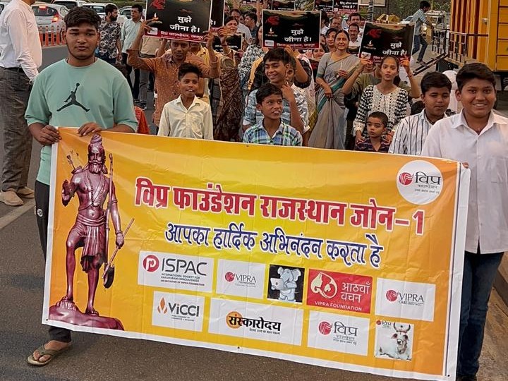 विप्र फाउंडेशन ने पहलगाम में हुए शहीदों को अंबेडकर सर्किल से अमर जवान ज्योति तक कैंडल मार्च निकाल दो मिनट का मौन रख श्रद्धांजलि अर्पित की। विप्र फाउंडेशन ने केंद्र से आतंकवाद के विरुद्ध निर्णायक संघर्ष की मांग भी की है। भारत माता की जय, पाकिस्तान मुर्दाबाद के नारे भी लगे। विधायक गोपाल शर्मा मार्च का नेतृत्व किया।
