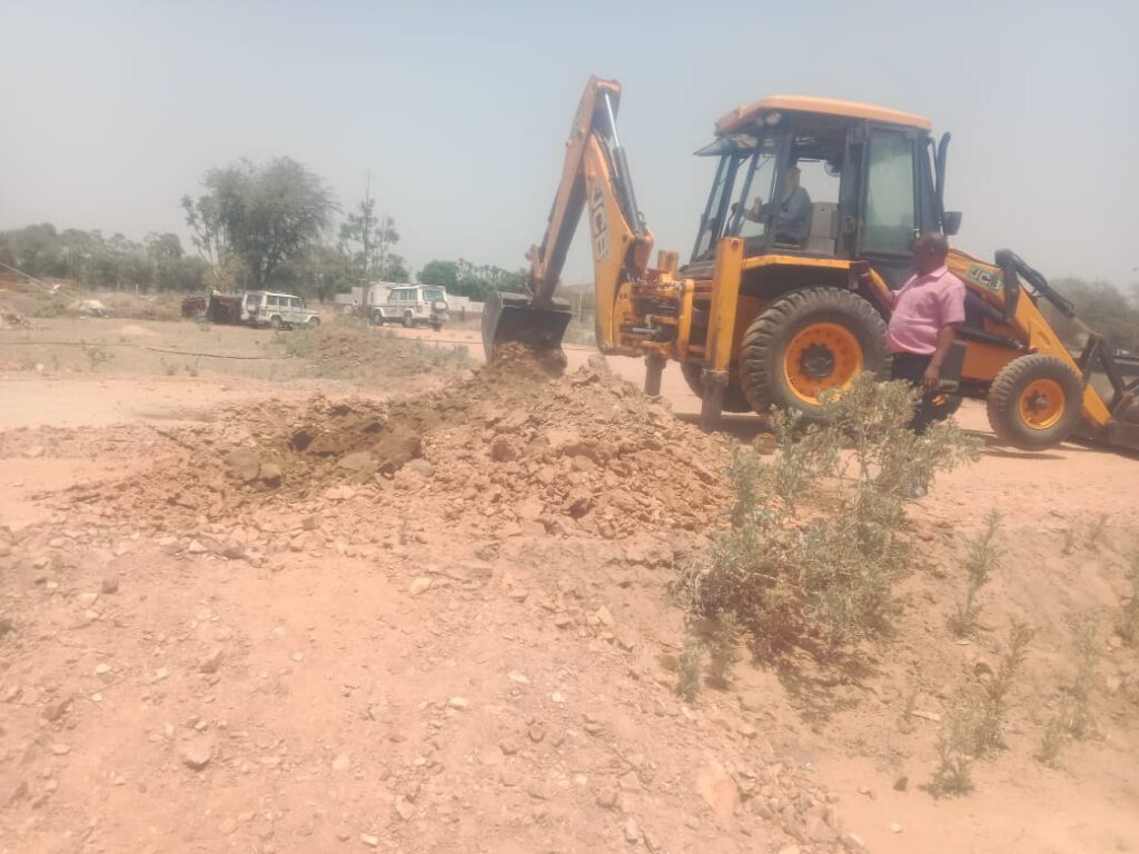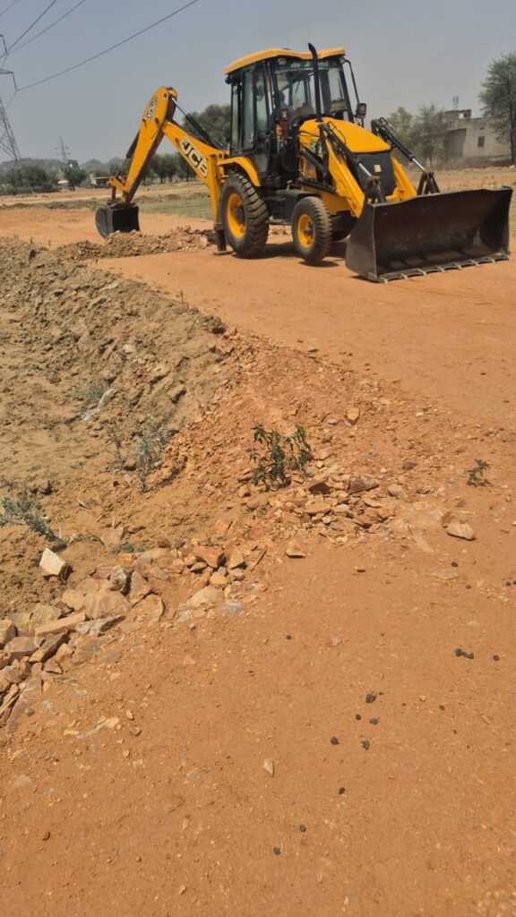 जेडीए द्वारा जोन-12 के क्षेत्राधिकार में अवस्थित ग्राम पिंगोलाई कालवाड़ रोड़, जिला जयपुर में करीब 10 बीघा निजी खातेदारी कृषि भूमि पर जेडीए की बिना स्वीकृति-अनुमोदन के एवं बिना भू रूपान्तरण करवायें भूमि को समतल कर ‘‘गोविन्द विहार’’ के नाम से बनाई गई मिट्टी-ग्रेवल सडकें व अन्य अवैध निर्माण कर नवीन अवैध कॉलोनी बसाने की सूचना प्राप्त होने पर आज जोन-12 के राजस्व व तकनीकी स्टॉफ की निशादेही पर प्रवर्तन दस्ते द्वारा जेसीबी मशीन व मजदूरों की सहायता से ध्वस्त किया जाकर नवीन अवैध कॉलोनी बसाने के प्रयास को विफल किया गया।