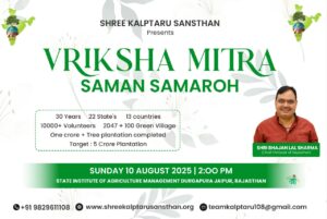 जयपुर – प्रकृति एवं संस्कृति के संरक्षण व संवर्धन को समर्पित संगठन श्री कल्पतरु संस्थान अपने तीस वें वार्षिक उत्सव को वृक्ष मित्र पुरस्कार समारोह के रूप में मनाने जा रहा है ! दस अगस्त रविवार को राज्य कृषि प्रबंध संस्थान दुर्गापुरा जयपुर में आयोजित होने जा रहे इस समारोह के दौरान ऑपरेशन सिंदूर 2.0 अभियान भी लॉन्च किया जाएगा ! जिसमें सिंदूर के एक लाख पौधे वितरण करने एवं लगवाने का कार्य किया जाएगा ! यह सभी पौधे संस्थान के स्वयंसेवकों द्वारा कठिन परिश्रम के बाद तैयार किए गए हैं ! इस अवसर पर पर्यावरण संरक्षण सहित विभिन्न सामाजिक सरोकारों से जुड़े क्षेत्रों में उत्कृष्ट सेवाएं देने वाले पर्यावरण कार्यकर्ताओं को वृक्ष मित्र पुरस्कार भी प्रदान किए जाएंगे ! जिसमें क्रमश तीन श्रेणियां में नकद राशि, प्रशस्ति पत्र एवं स्मृति चिन्ह प्रदान किया जाता है । संस्थान के किसी एक कार्यकर्ता को वालंटियर ऑफ द ईयर, सर्वश्रेष्ठ स्वयंसेवक सम्मान से भी सम्मानित किया जाता है ! राजस्थान के बाहर से आने वाले कार्यकर्ताओं को प्राकृतिक सिंदूर से तिलक किया जाएगा और हल्दीघाटी की मिट्टी भेंट की जाएगी । ट्री मैन ऑफ़ इंडिया के नाम से मशहूर पर्यावरणविद् विष्णु लाम्बा ने बताया कि संस्थान की ओर से पिछले वर्ष ग्रीन बचपन अभियान शुरू किया गया था। जिसके माध्यम से पांच से 12 साल के छोटे बच्चों की ग्रीन आर्मी बनाने का प्रयास शुरू किया गया । जिसमें अब तक दुनिया के सात देशों के बच्चे जुड़ चुके हैं। इस बार ऑपरेशन सिंदूर 2.0 कैंपेन शुरू करने जा रहा है। इस अभियान के अंतर्गत एक लाख से अधिक विलुप्त होती सिंदूर की प्रजाति के पौधे लगवाना है। बता दें कि श्री कल्पतरू संस्थान लंबे समय से पर्यावरण संरक्षण सहित विभिन्न सामाजिक सरोकारों को समर्पित होकर जमीनी स्तर पर सार्थक प्रयास करता आ रहा है ! संस्थान के सार्थक प्रयासों को देखते हुए सरकार द्वारा राजीव गांधी पर्यावरण पुरस्कार, अमृता देवी विश्नोई पुरस्कार, वानीकी पुरस्कार, डॉ एपीजे अब्दुल कलाम राष्ट्र निर्माण पुरस्कार सहित संयुक्त राष्ट्र पर्यावरण कार्यक्रम प्रमुख द्वारा भी सम्मानित किया गया है । संस्थान वर्ष 2047 तक 5 करोड़ वृक्ष लगाने के लिए संकल्पित है। तब भारत आजादी के 100 वर्ष पूर्ण कर रहा होगा, और इस क्रम में हाल ही में एक करोड़ साठ हजार पौधे लगाकर संरक्षित करने का लक्ष्य 30 वर्षों में पूर्ण किया जा चुका है। संस्थान के सार्थक प्रयासों को देखते हुए सरकार द्वारा राजीव गांधी पर्यावरण पुरस्कार, अमृता देवी विश्नोई पुरस्कार, वानीकी पुरस्कार, डॉ एपीजे अब्दुल कलाम राष्ट्र निर्माण पुरस्कार सहित संयुक्त राष्ट्र पर्यावरण कार्यक्रम के प्रमुख द्वारा सम्मानित होने का अवसर प्राप्त ह