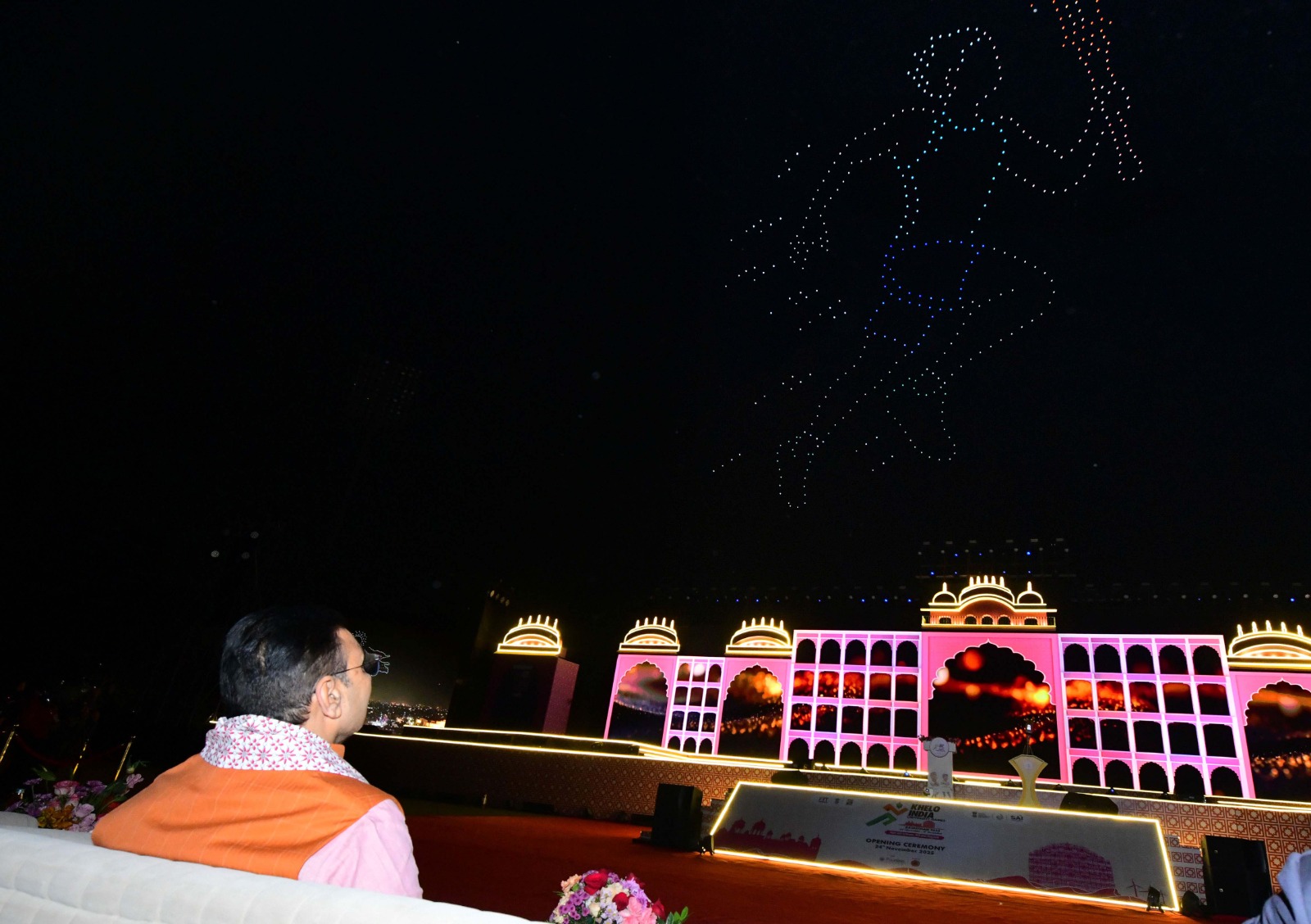 समारोह में ड्रोन के जरिए लाई गई टॉर्च को मुख्यमंत्री ने मुख्य मंच पर स्थापित कर खेलो इंडिया यूनिवर्सिटी गेम्स का शुभारंभ किया। समारोह में देश-प्रदेश में खेलों के विकास और राजस्थान की विकास यात्रा व गौरव को ड्रोन शो के प्रदर्शन से दिखाया गया। इस दौरान विभिन्न कार्यक्रमों की प्रस्तुतियां हुई।