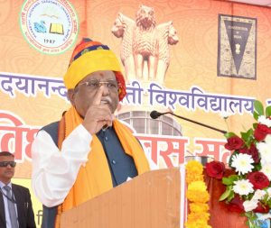 राज्यपाल हरिभाऊ बागडे ने बुधवार को महर्षि दयानन्द सरस्वती विश्वविद्यालय में आयोजित संविधान दिवस समारोह में भाग लिया।इससे पूर्व उन्होंने संविधान उद्यान का अवलोकन भी किया।समारोह में महर्षि दयानन्द सरस्वती विश्वविद्यालय की गतिविधियों से सम्बन्धित न्यूज लेटर त्रिवेणी का विमोचन किया गया।