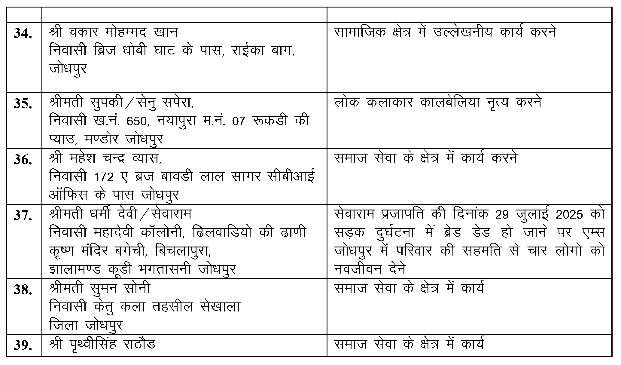 दुख की इस घड़ी में भी परिवार ने साहस दिखाते हुए सेवाराम के अंगदान का निर्णय लिया। उनकी सहमति से सेवाराम के अंगों से चार लोगों को नया जीवन मिला। इसी अनुकरणीय निर्णय के लिए प्रशासन ने आज उनके परिवार को सम्मानित किया।