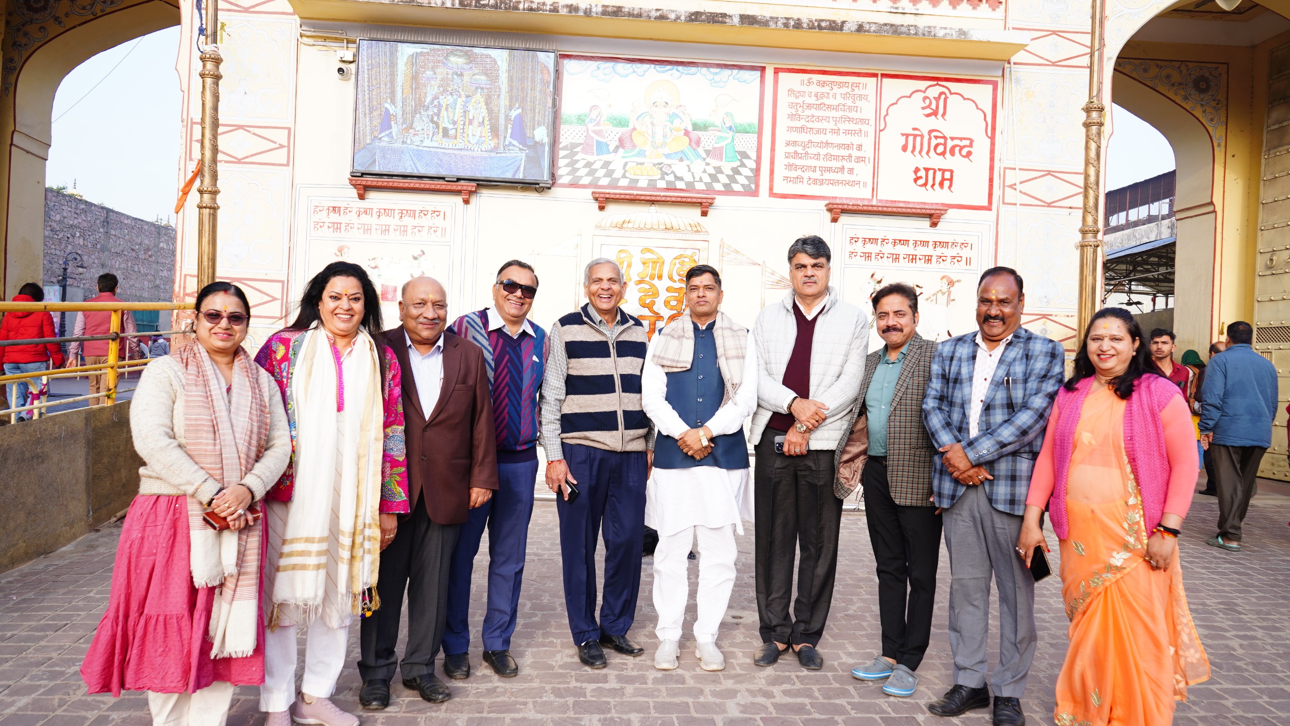 राजधानी जयपुर में प्रस्तावित इंडिया स्टोनमार्ट 2026 के सफल आयोजन की मंगल कामना के साथ आज आयोजन समिति के पदाधिकारियों एवं प्रतिनिधियों ने शहर के आराध्य देव श्री गोविंद देव जी मंदिर में दर्शन कर आशीर्वाद प्राप्त किया। इस अवसर पर सभी आयोजकों ने भगवान से प्रदर्शनी के सफल, सुव्यवस्थित और ऐतिहासिक आयोजन की प्रार्थना की।