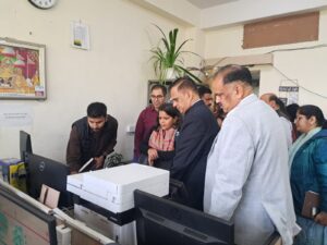 मुख्य सचिव ने पहले प्रथम तल पर निदेशक जन-स्वास्थ्य विंग एवं एनएचएम विंग का निरीक्षण किया। इसके बाद दूसरे तल पर परियोजना निदेशक एनएचएम कार्यालय, एनएचएम एचआर विंग में जाकर अवलोकन किया। तृतीय विंग पर राजहेल्थ पोर्टल अनुभाग एवं विधि विंग का निरीक्षण किया गया। निरीक्षण के दौरान उन्होंने पोर्टल के माध्यम से संचालित मानव संसाधन सूचना प्रणाली तथा अन्य डिजिटल मॉड्यूल्स की विस्तृत जानकारी प्राप्त की। उन्होंने राज हैल्थ पोर्टल के माध्यम से राज्य के समस्त स्वास्थ्य कार्मिकों एवं अधिकारियों के ई-सर्विस रिकॉर्ड, ऑनलाइन अवकाश प्रबंधन, पदस्थापन स्थिति संधारण तथा अन्य प्रशासनिक प्रक्रियाओं के डिजिटलीकरण कार्यप्रणाली का भी अवलोकन किया और पारदर्शिता के लिए किए जा रहे इन नवाचारों को सराहा।