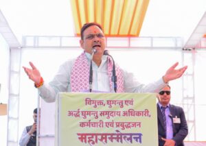मुख्यमंत्री भजनलाल शर्मा रविवार को अंबाबाड़ी स्थित आदर्श विद्या मन्दिर के सभागार में आयोजित विमुक्त, घुमन्तु एवं अर्द्ध घुमन्तु समुदाय अधिकारी, कर्मचारी एवं प्रबुद्धजन महासम्मेलन को संबोधित कर रहे थे। उन्होंने कहा कि हमारी सरकार ने विमुक्त, घुमन्तु और अर्द्ध घुमन्तु समुदायों के सशक्तीकरण के लिए ठोस क़दम उठाए हैं। हमारी सरकार ने घुमन्तु परिवारों को आश्रय उपलब्ध कराने के लिए आवासीय पट्टे वितरित किए एवं इन परिवारों के बच्चों की शिक्षा के लिए छात्रावास की व्यवस्था की।