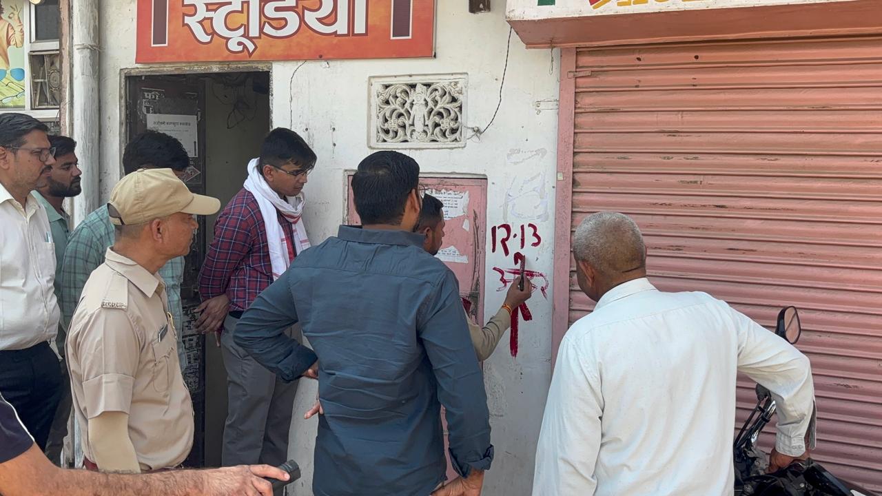 बाईपास से सिरसी रोड़ तक रोड़ की चौड़ाई 160 फीट किये जाने के संबंध में चिन्ही करण का कार्य शुरू
