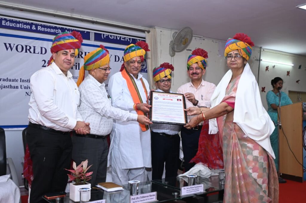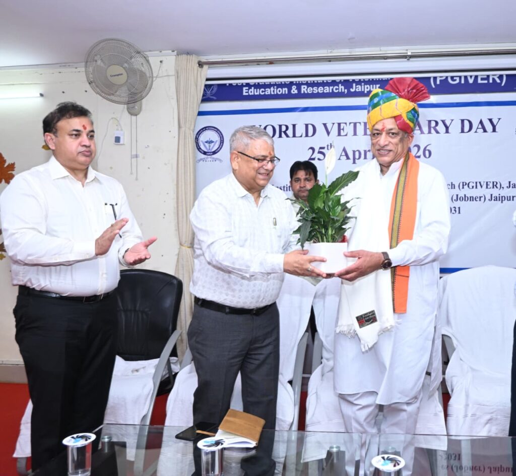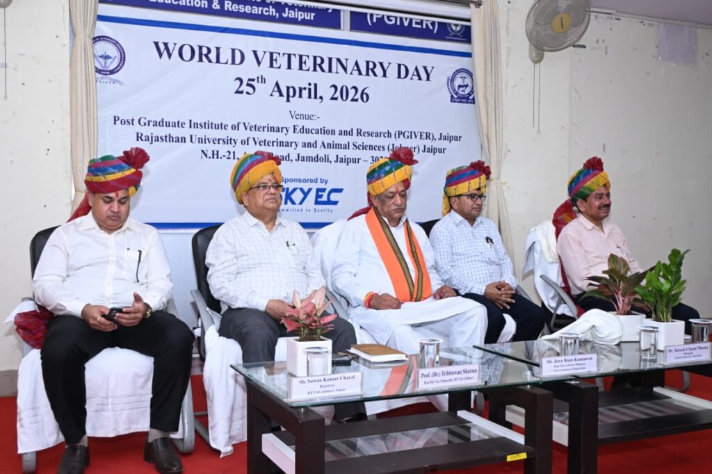 जयपुर। राजुवास (जोबनेर) जयपुर द्वारा स्नातकोत्तर पशुचिकित्सा शिक्षा एवं अनुसंधान संस्थान (पी.जी.आई.वी.ई.आर.), जयपुर में शनिवार को “विश्व पशुचिकित्सा दिवस-2026” का आयोजन किया गया। संस्थान के अधिष्ठाता एवं फेकल्टी चेयरमेन प्रो. (डॉ.) धर्म सिंह मीना ने सभी अतिथियों का स्वागत किया व विश्व पशुचिकित्सा दिवस की बधाई दी। कार्यक्रम के मुख्य अतिथि श्रीमान जोराराम कुमावत केबिनेट मंत्री, पशुपालन,डेयरी,गोपालन एवं देवस्थान विभाग,राजस्थान सरकार ने इस अवसर पर सभी को विश्व पशुचिकित्सा दिवस की बधाई एवं शुभकामनायें प्रेषित करते हुए कहा कि आज का दिन पशुचिकित्सकों के योगदान को याद करने का दिन है।