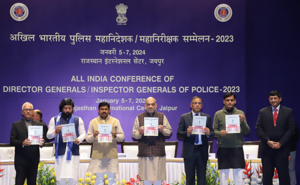 जयपुर(सुनील शर्मा) केंद्रीय गृह मंत्री अमित शाह ने आज राजस्थान इंटरनेशनल सेंटर,जयपुर में पुलिस महानिदेशकों (DGsP) और पुलिस महानिरीक्षकों (IGsP) के 58वें सम्मेलन का उद्घाटन किया।यह सम्मेलन हाइब्रिड मोड में आयोजित किया जा रहा है जिसमें पुलिस महानिदेशकों और पुलिस महानिरीक्षकों के साथ—साथ केंद्रीय पुलिस संगठनों के प्रमुख जयपुर में व्यक्तिगत रूप से भाग ले रहे हैं,वहीं देश भर से विभिन्न रैंकों के 500 से अधिक पुलिस अधिकारी वीडियो कॉन्फ्रेंसिंग के माध्यम से सम्मेलन में भागीदारी कर रहे हैं।केंद्रीय गृह मंत्री ने आसूचना ब्यूरो (IB) के अधिकारियों को सराहनीय सेवा के लिए पुलिस पदक वितरित किए और तीन सर्वश्रेष्ठ पुलिस स्टेशनों के लिए ट्रॉफियां प्रदान कीं।