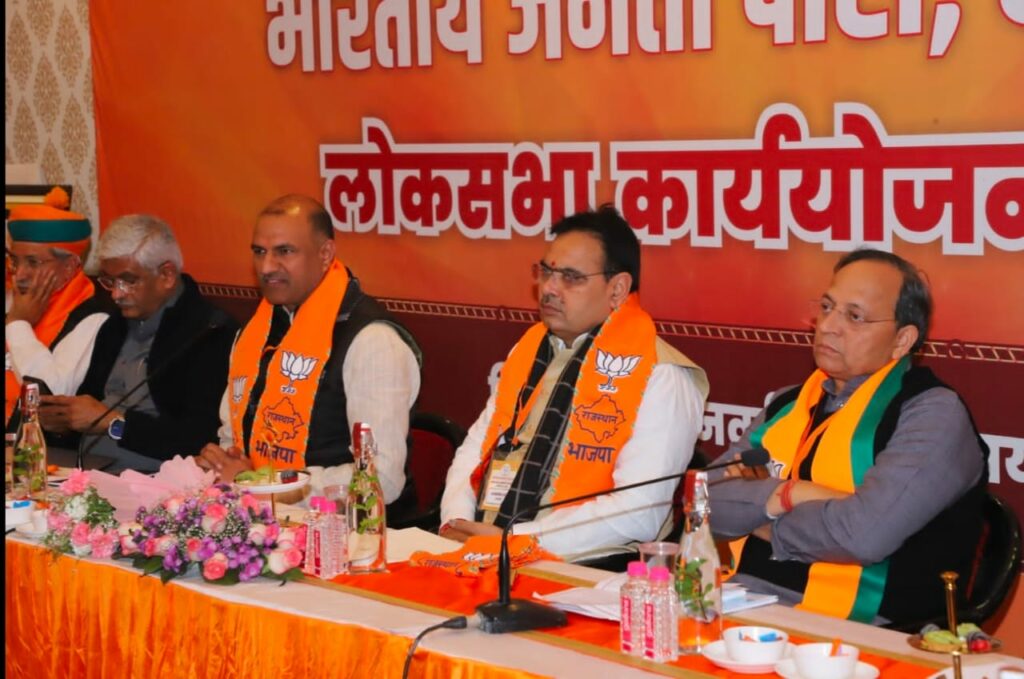 बैठक के दौरान भाजपा प्रदेशाध्यक्ष सीपी जोशी ने बैठक को संबोधित करते हुए कहा कि राजस्थान में भाजपा की ताकत जनसंघ काल से समर्पित कार्यकर्ता की एक बड़ी संख्या रही है।हमें मुख्य रूप से इन चार बिंदुओं पर विशेष ध्यान देना है। जिसमें हमारी ताकत,हमारी कमजोरियां,हमारे सामने जो चुनौतियां हैं वे और प्रत्येक बूथ पर विजय के साथ विस्तार की संभावनाओं को तलाशना।प्रदेश की सभी 25 सीटें जीतने के लिए हमें बूथ जीतने का संकल्प लेना होगा।बूथ की जब हम बात करते हैं तब समझिए कि गरीब, महिला,किसान और युवा इन चार वर्गों को साधना जरूरी है।इन सभी वर्गों के सर्वांगीण विकास के लिए हम आगे रहना होगा।