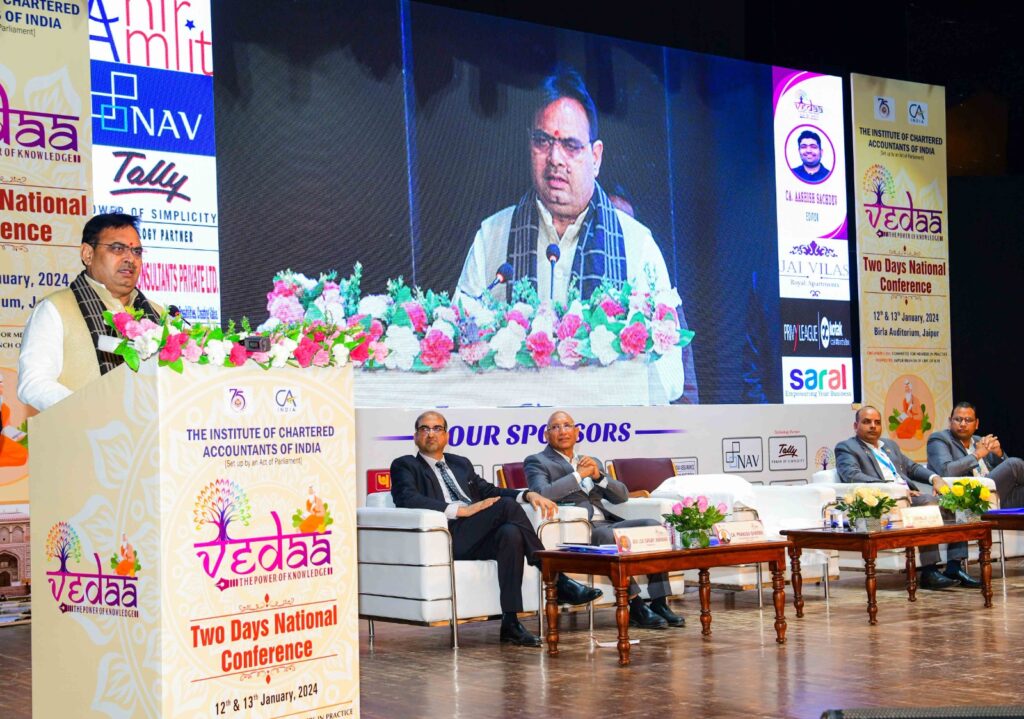 मुख्यमंत्री भजनलाल शर्मा जयपुर में आयोजित चार्टर्ड अकाउंटेंट्स की दो दिवसीय राष्ट्रीय कॉन्फ्रेंस ‘‘वेदा’’ को सम्बोधित कर रहे थे।इस दौरान उन्होंने देश-दुनिया से आए चार्टर्ड अकाउंटेंट्स को नववर्ष,युवा दिवस,लोहड़ी एवं मकर सक्रांति की शुभकामनाएं देते हुए कहा कि सीए अपने वित्तीय ज्ञान और कौशल का उपयोग कर देश के आर्थिक विकास और स्थिरता में महत्ती भूमिका निभा रहे हैं।इस कॉन्फ्रेंस में होने वाला विमर्श राज्य व देशहित में सकारात्मक भूमिका निभाएगा। टेक्नोलॉजी एवं लेखांकन में नए बदलावों से पैदा होने वाली चुनौतियों का सामना करने और आपसी ज्ञान को साझा करने हेतु ऐसे सम्मेलन बहुत उपयोगी हैं।इस दौरान मुख्यमंत्री भजनलाल शर्मा ने कॉन्फ्रेंस प्रतिभागियों से प्रदेश हित में वित्तीय प्रबंधन के रोडमेप से संबंधित सुझाव देने का आहृवान किया।
