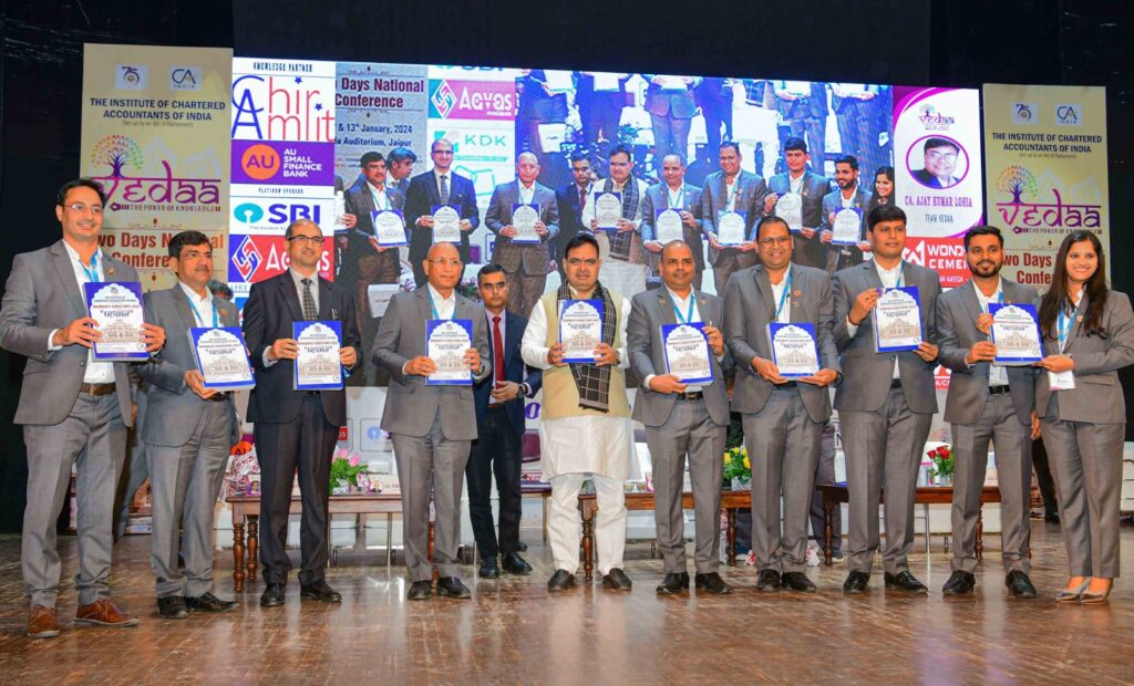 मुख्यमंत्री भजनलाल शर्मा ने कहा कि आईसीएआइ (इंस्टीट्यूट ऑफ चार्टर्ड अकाउंटेंट्स ऑफ इंडिया) चार्टर्ड अकाउंटेंसी को नियम अनुरूप चलाने में बेहद अहम जिम्मेदारी का निर्वाह कर रहा है।ये गौरव का विषय है कि आईसीएआई 11.50 लाख से अधिक सदस्यों और छात्रों के साथ दुनिया में सीए का सबसे बड़ा पेशेवर निकाय है। भारत में करीब 4 लाख और राजस्थान में करीब 30 हजार सीए देश सेवा के काम में लगे हुए हैं।देश के प्रधानमंत्री मोदी के विकसित भारत के संकल्प को पूरा करने में आपकी भूमिका अत्यंत महत्वपूर्ण है।इस दौरान उन्होंने हाल में सीए परीक्षा में पास हुए सभी युवाओं और विशेष रूप से राजस्थान से इस परीक्षा में प्रथम स्थान प्राप्त करने वाले मधुर जैन,तीसरा स्थान प्राप्त करने वाले टिकेन्द्र कुमार सिंघल, ऋषि मलहोत्रा और मेरिट में स्थान प्राप्त करने वाले विनय मंगतानी, मानसी गुप्ता और तुषार जैन को भी बधाई दी।