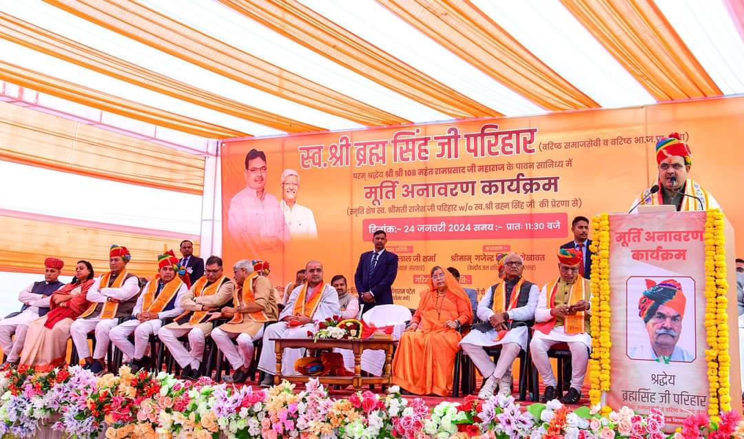 जयपुर(सुनील शर्मा) मुख्यमंत्री भजनलाल शर्मा ने बुधवार को जोधपुर के मण्डोर में स्व.ब्रह्म सिंह परिहार की मूर्ति का अनावरण किया।उन्होंने समारोह में कहा कि स्व.परिहार का जीवन हम सभी के लिए प्रेरणास्त्रोत है।वे स्पष्टवादी,ईमानदार,कर्मनिष्ठ जनप्रतिनिधि थे।उन्होंने सदैव जनसेवा के कार्य को सर्वोच्च प्राथमिकता दी।