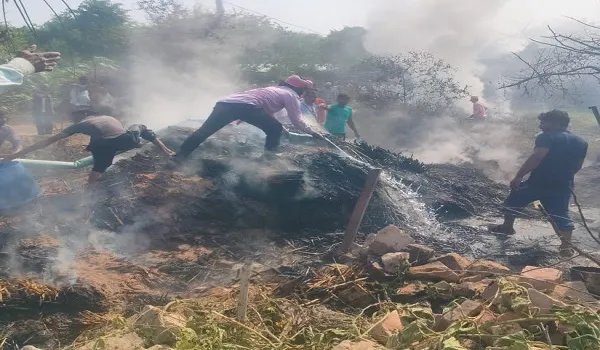 हाईटेंशन लाइन में स्पार्किंग से कड़बी में लगी भीषण आग, 2 लोग बुरी तरह झुलसे