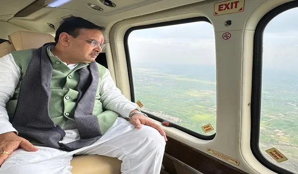 CM भजनलाल शर्मा का इटावा दौरा, नोनेरा एबरा बांध का किया हवाई निरीक्षण