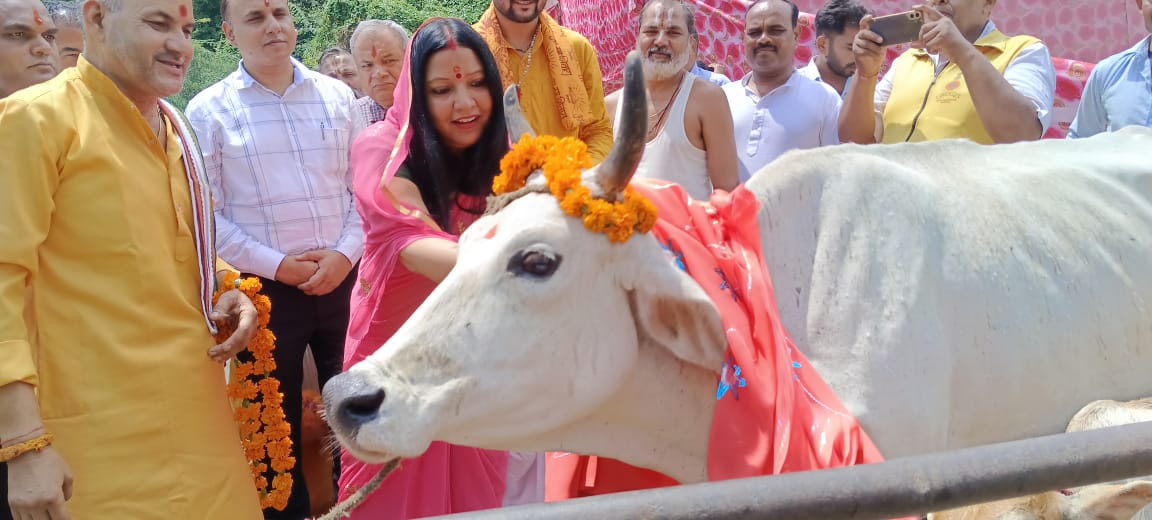 गलता तीर्थ में गौशाला निर्माण के लिए महापौर कुसुम यादव ने किया भूमि पूजन